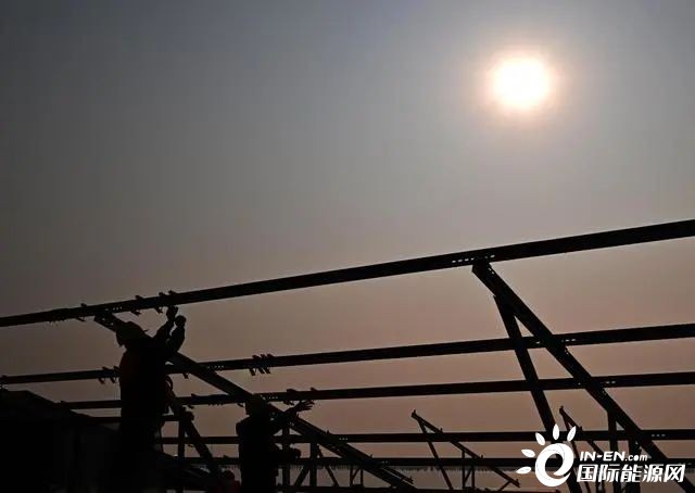 1月5日,建設(shè)者在華電海晶光伏項(xiàng)目B標(biāo)段施工。新華社記者 李然 攝